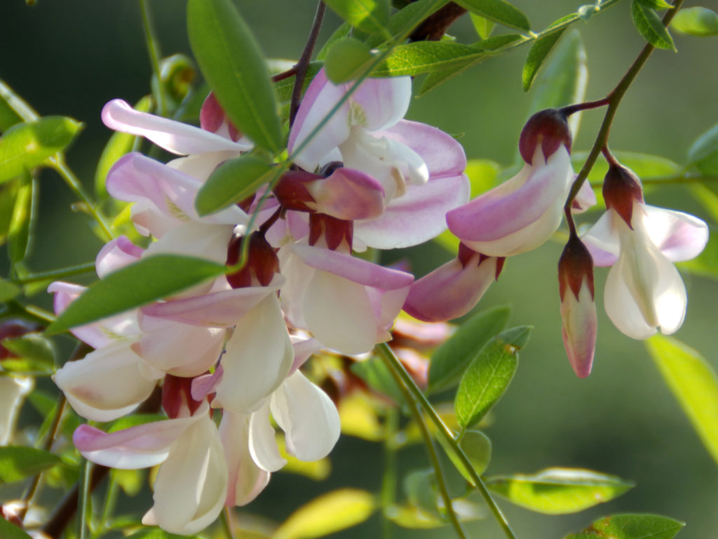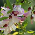 The softly scented flowers of Robinia slavirii Hillieri