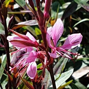 A beautiful North American perennial for summer colour. A bushy plant with red tinted foliage producing slender stems each bearing masses of 4 petalled pink flowers from early Summer into Autumn. Prefers a light, well drained soil in full sun. Deciduous and fully hardy. HGT 1m