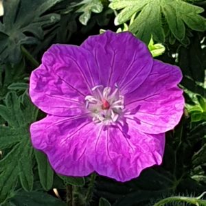 A lovely geranium with deciduous, dark, deep purple foliage that acts as the perfect backdrop to the bright purple-blue, single flowers produced from early summer. Fully hardy. Happy in most moderately fertile, moist but well-drained soil in full sun or part shade. HGT 20cm