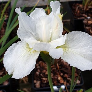 This multi award winning iris produces large white blooms with pale yellow shading on the signals in early summer. Vigorous and floriferous, a real show stopper! Prefers fertile, moist soil in full sun or part shade. Ideal next to a pond or river. Deciduous & fully hardy. HGT 75cm