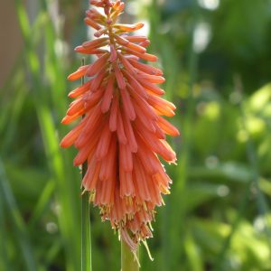 A lovely form of ‘Red Hot Poker’ forming an upright, semi-evergreen clump of dark green, strappy foliage & producing tall spikes of peachy-pink flowers in late summer. Prefers moist but well drained soil in full sun/part shade. Fully hardy. HGT 80cm
