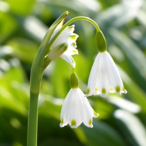 Looking more like a giant summer flowering snowdrop, this lovely bulb produces stems of nodding, bell-shaped, lightly fragrant, white flowers with green markings on the tips in early summer. Prefers moist soil in full sun. Fully hardy. HGT 90cm