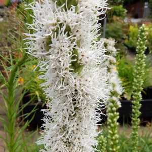 A compact, clump-forming little perennial with lance-shaped, dark-green foliage that produces spires of fluffy, white flowers during summer. Prefers well drained soil in full sun/part shade. Deciduous & fully hardy. HGT: 65cm