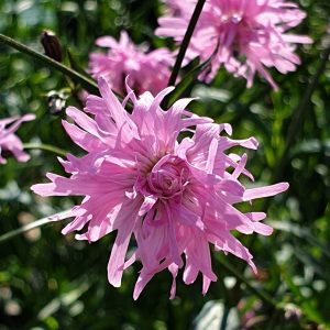 A lovely little perennial with lance-shaped, blue-green foliage that produces double, bright pink flowers with deeply cut petals from May to July. Prefers a mildly damp soil in part shade. Fully hardy. HGT: 50cm