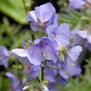 Discovered by chance in a nursery in France, this lovely perennial produces masses of pale blue, bell like flowers in early summer above light green/cream foliage that can be pink flushed when new. Fully hardy and deciduous. Prefers fertile soil in full sun or part shade. HGT 40cm