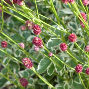 A lovely form of Sanguisorba producing short spikes of deep red flowers held on wiry stems above divided, blue-green & silver, variegated foliage throughout summer. Happy in well drained soil in full sun/part shade. Deciduous & fully hardy. HGT 30cm
