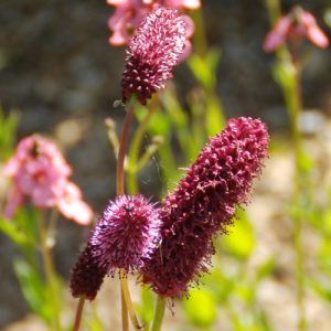 A lovely form of Sanguisorba producing short spikes of deep pink flowers held on wiry stems above divided, blue-green foliage throughout summer. Happy in well drained soil in full sun/part shade. Deciduous & fully hardy. HGT 50cm