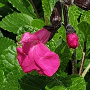 A lovely, clump forming perennial with aromatic, mid-green foliage that produces large, vivid cerise-red, flowers on contrasting purple stems throughout summer. Happy in well drained soil in full sun. Hardy to -5 in a sheltered spot. Deciduous. HGT 1.5m