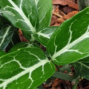 A rarely offered, creeping form of Spindle that can be wall trained. Wolong Ghost has evergreen, dark green foliage with prominent pale veins. Prefers a well drained, poor soil in part shade. Fully hardy. HGT: 60cm